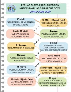Consulta toda la información para solicitar plaza, presentar las solicitudes, plazos,… para el curso 2026-2027.